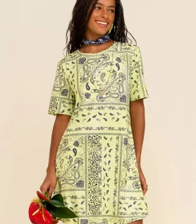 Vestido Zinco Solto Decote Careca Manga Curta - Curto Verde