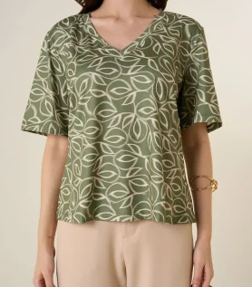 Blusa Maria.Valentina Solta Decote V Manga Curta Padrão Verde