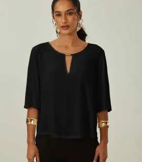 Camiseta Maria.Valentina Solta Decote Careca Manga Curta Padrão Preto